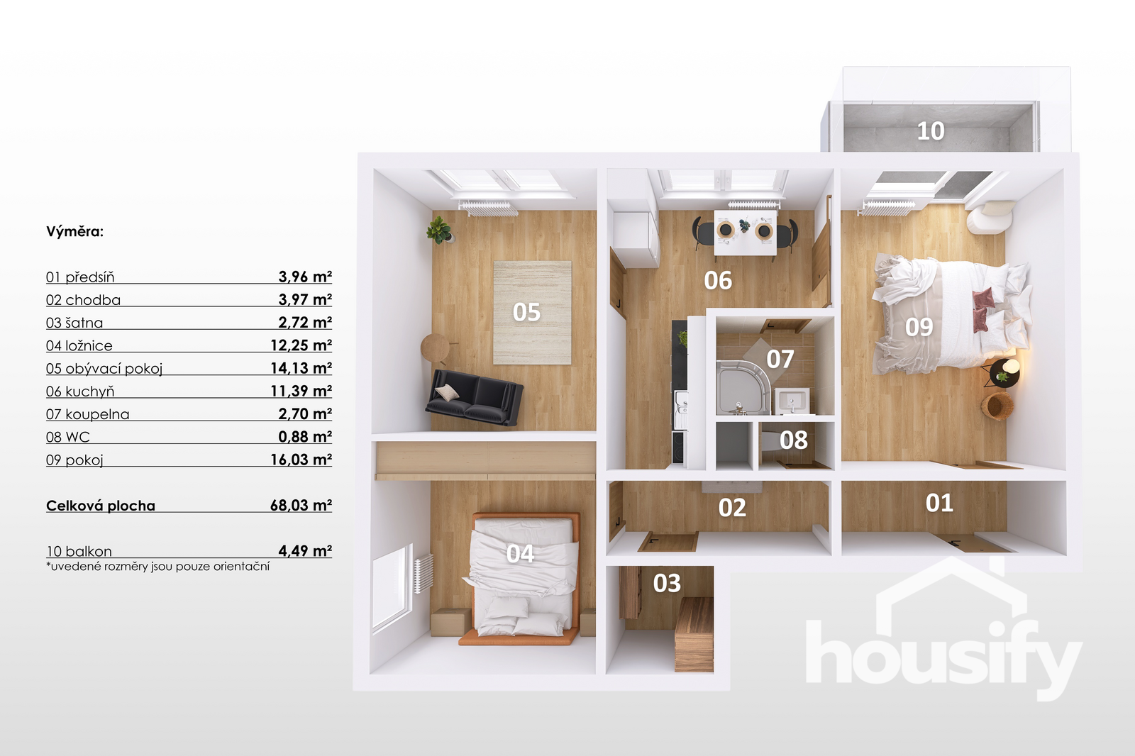 Dispoziční řešení bytu zahrnuje: